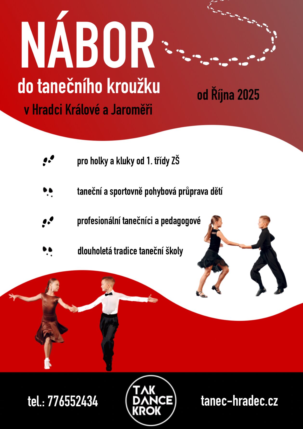 Nábor je určen pro kluky a holky od 1. třídy základní školy. Chceš, aby se tvé dítě naučilo tančit a hledáš pro něj kroužek?🤸♀️ Přijďte se k nám přidat a objevte svět tance s námi! Od října otevíráme nábory do našich tanečních